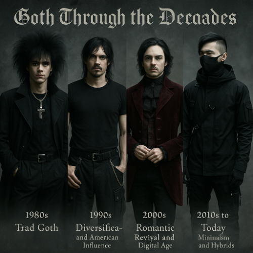This decade saw Goth transform from a singular subculture into a branching tree of interconnected scenes, each with its own unique visual identity.