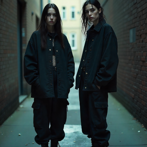 - Key Look: This style focuses on clean lines, architectural shapes, and a monochromatic palette. It incorporates elements of modern techwear and sportswear, creating a look that is dark, futuristic, and sleek. Think long, asymmetrical black hoodies, tapered trousers, and high-end black sneakers.
