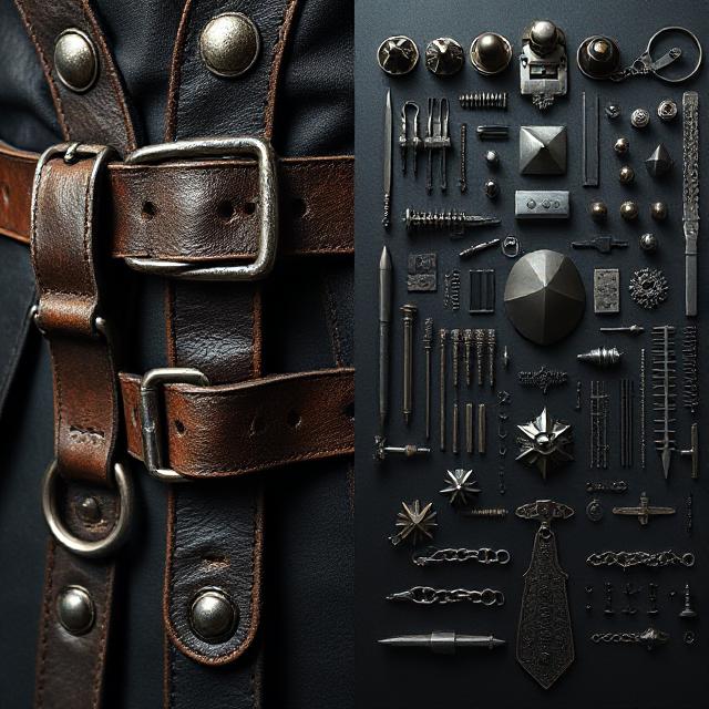 | Fastenings | Leather straps | Buckles, D-rings, zippers, chains |